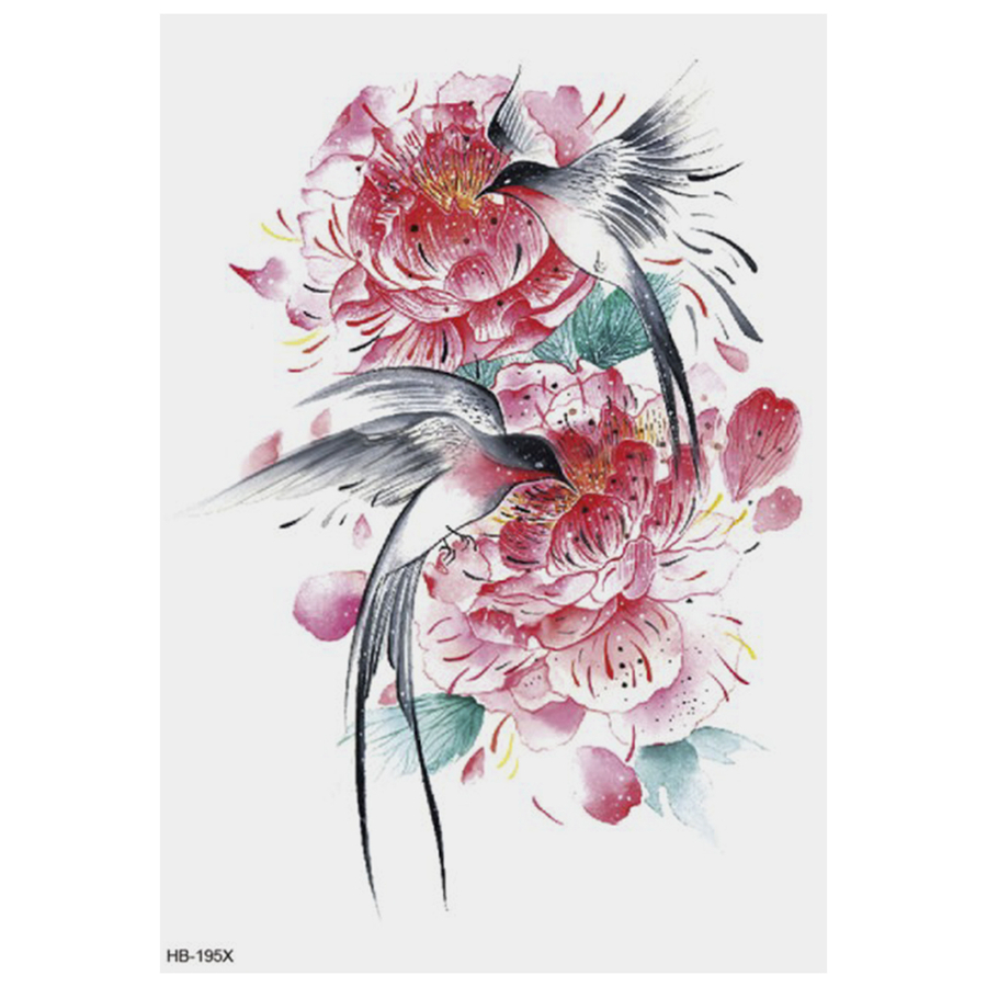 Временная тату Ласточки среди цветов (HB-195X, 21x15 см) Держится в течение 10-24 дней, не токсична, устойчива к влаге. Способ нанесения: 1. Очистить кожу, обезжирить поверхность. 2. Снять защитную прозрачную пленку с листа. 3. Приложить лист рисунком к коже и смочить его пропитанной в воде губкой. 4. Через 30-60 секунд аккуратно плавным движением снять бумагу. 5. Дать татуировке просохнуть естественным путем, в течении 30 минут не подвергая при этом трению и другим физическим воздействиям.