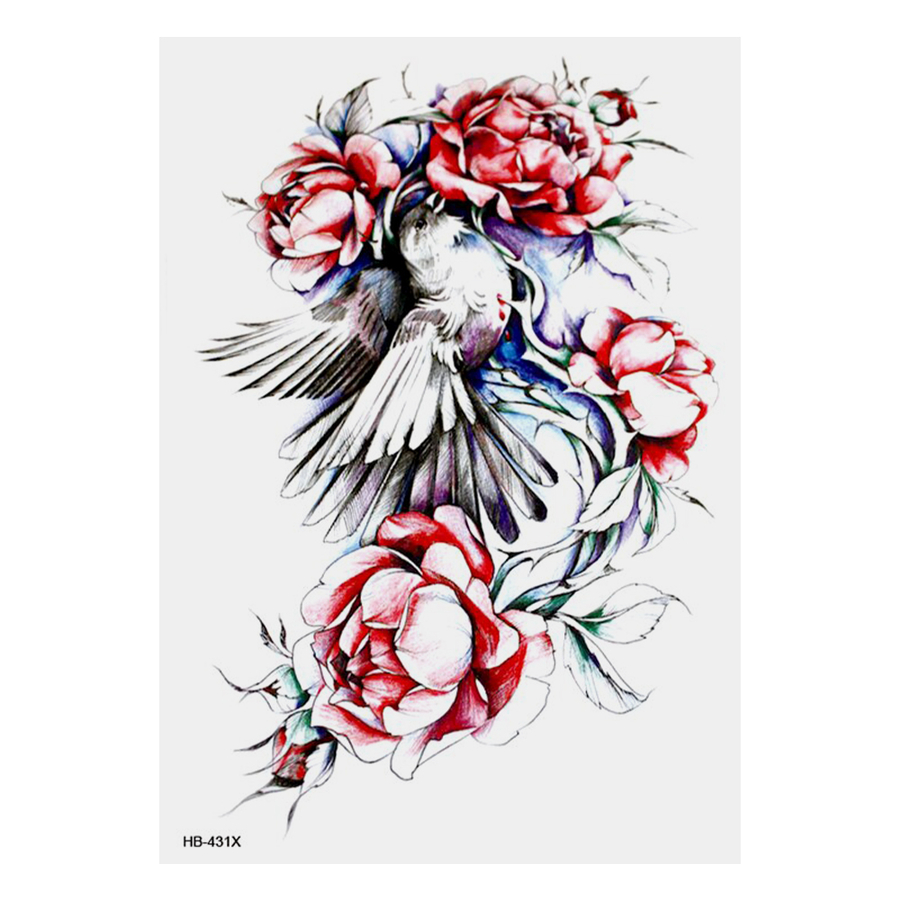 Временная тату Птица в розах (HB-431X, 21x15 см)