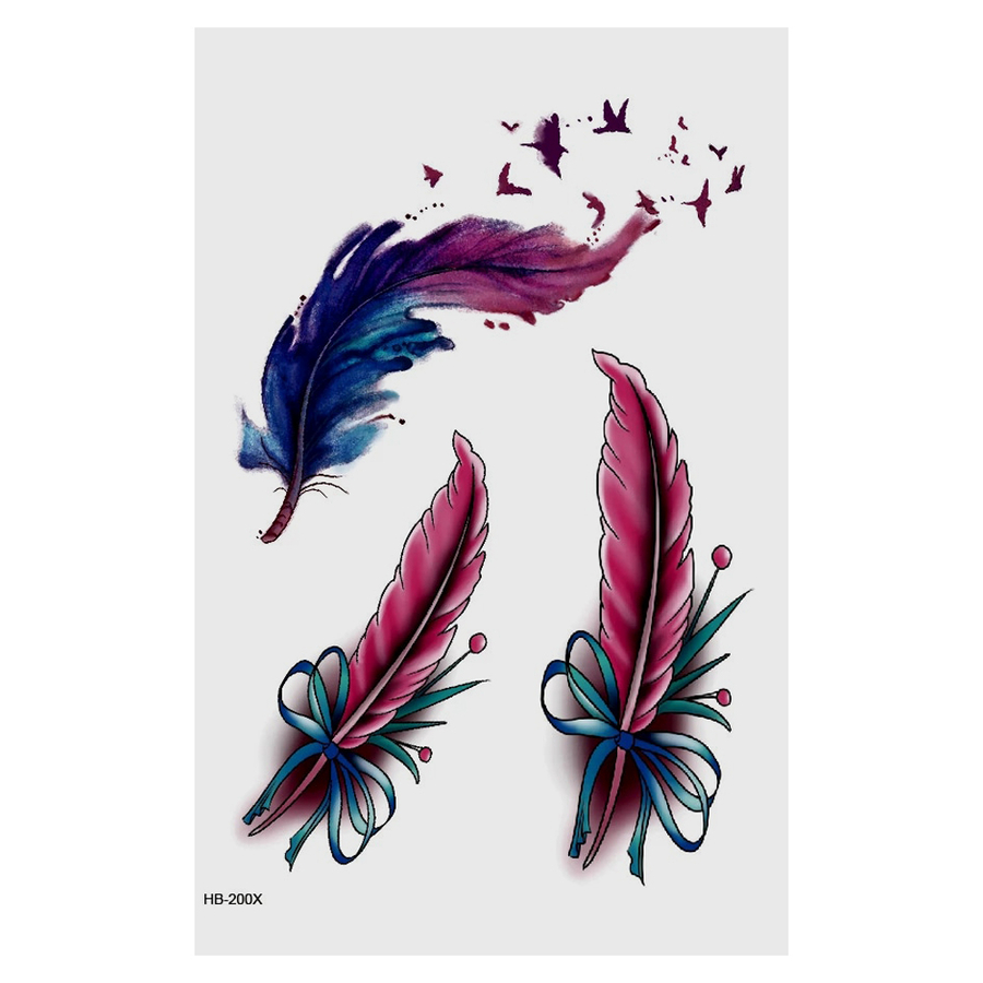 Временная тату Три пурпурных пера (HB-200X, 21x15 см)