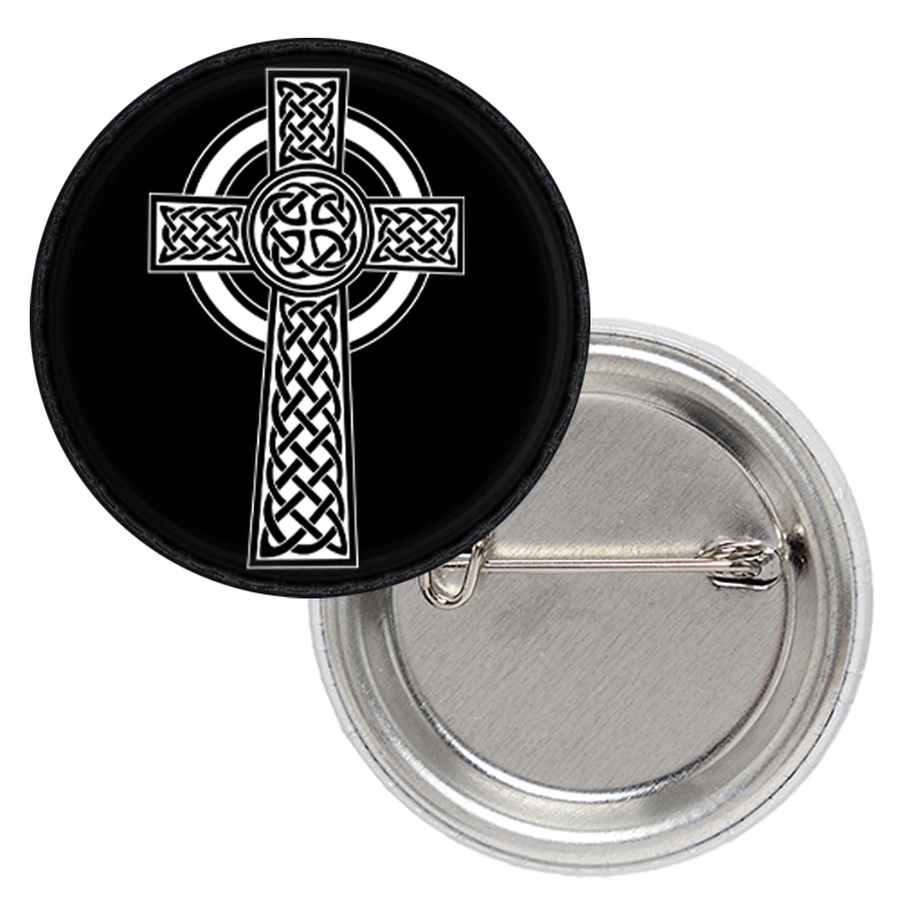 Значок Кельтский крест белого цвета на чёрном фоне Материал: Металл