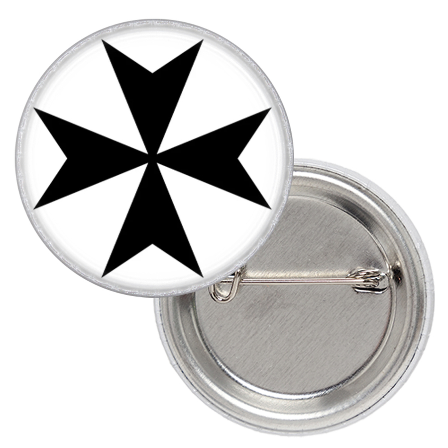 Значок Мальтийский крест чёрного цвета на белом фоне Материал: Металл